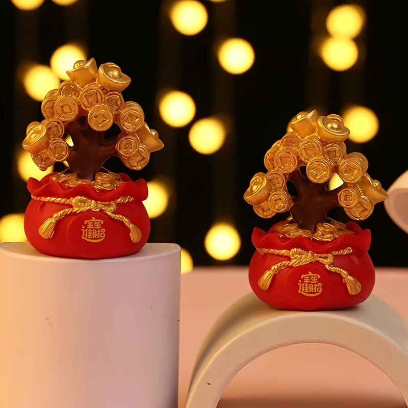 1pc Resin Wealth Tree Ornaments (2.68"×2.17"1.97"); Treasure Basin; Home Decorations; Holiday Gifts