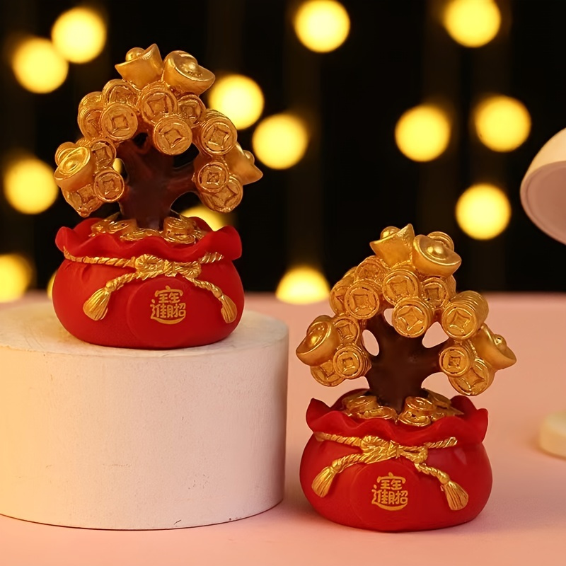 Home > 1pc Resin Wealth Tree Ornaments (2.68"×2.17"1.97"); Treasure Basin; Home Decorations; Holiday Gifts